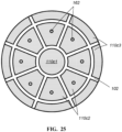- the plurality of conductive patches include a center conductive patch surrounded in a radial direction by a plurality of intermediate conductive patches, and each of the conductive vias extend through one of the plurality of intermediate conductive patches at a point on the intermediate conductive patch that is radially outward from a geometric center of the intermediate conductive patch.