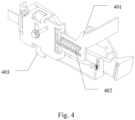 - the locking device 4 includes a driving member 401, an elastic member 402 and a locking member 403.