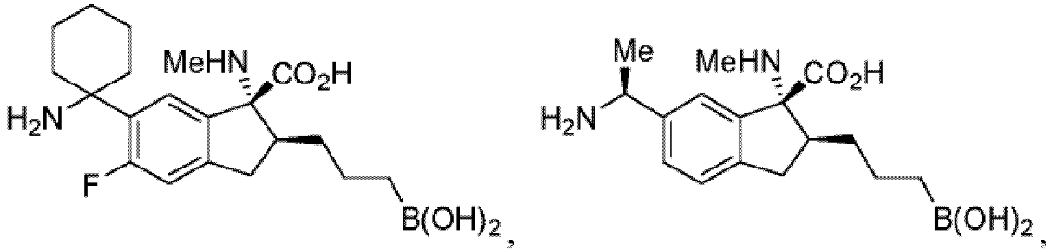 - the administration of a therapeutically effective amount of an arginase inhibitor described herein in combination with at least one chemotherapeutic agent results in a cancer survival rate greater than the cancer survival rate observed by administering either alone.