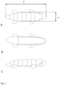 - Figure 1 illustrates an example of a toy, showing the top view (A), the bottom view (B) and side view (C).