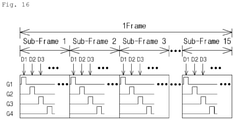 - G09G3/2022—Display of intermediate tones by time modulation using two or more time intervals using sub-frames