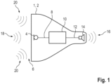 - An acousto-electrical input transducer includes in particular any transducer that is set up to generate an electrical audio signal from ambient sound, so that air movements and air pressure fluctuations caused by the sound at the location of the transducer are reproduced by corresponding oscillations of an electrical quantity, in particular a voltage in the generated audio signal.