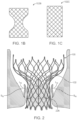 - the stent valve support frame may have a symmetric hourglass configuration 102B shown in FIG. 1B , a generally tubular configuration 102C as shown in FIG. 1C , or other stent configuration or shape known in the art for valve replacement.
