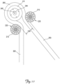 - the guide rollers 212 and 213 are configured and arranged for pivoting together as a unit about the drive axis 245 of the drive shaft 244 independently of the drive roller 211. More specifically, the guide rollers 212 and 213 are mounted to a roller assembly housing 227, which in turn is rotatably mounted upon the drive shaft 244 for rotation about the drive axis 245 and rotation about the drive roller 211.