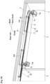 - the pull-in device is disposed on a rail side, that is, on the inclined portion of the rail to capture a roller traveling body which has moved from the straight portion to the inclined portion and pull the support shaft attached to the roller traveling body to the closed position.