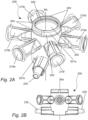 - the house has one or more inlets 210a-f, for received drug fluids. All inlets 210a-f, are arranged at the same plane transverse the rotational axis. As best seen in Fig.