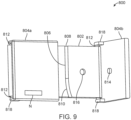 - Fig. 6A shows the bottom plate 602 with two grooves 610, alignment features 612 such as pins, or apertures for receiving pins, and hinge element 614 in a central portion of the bottom plate.