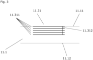 - Fig.3 outlines an arrangement of a coil 11.31, which is partially integrated into the measuring tube wall 11.1, whereby the coil has several sections 11.311 and connecting pieces 11.312 for the purpose of electrically connecting adjacent connecting pieces.