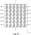 - first channel network comprises first channels having a cross-section that varies by continuously increasing from the first inlet surface to the first outlet surface