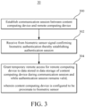 - the content computing device 100 may enable temporary remote access to data stored in the content computing device 100 using biometric data for authentication.