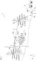 - a supporting cable 2 is visible, with a carriage 100 mounted on the supporting cable 2 via rollers 102.