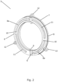 - the first rigid shell member and/or the second rigid shell member may be provided with one or more cut-outs allowing a portion of the sealing member to protrude through the rigid shell member, thereby allowing the sealing member to be arranged in sealing abutment with a rigid shell member of an adjacent ring. This has already been described in detail above with reference to the first aspect of the invention.
