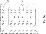 - the gantry frame 30 in figure 3C depicts the air knife 34, preferably comprised of an array of nozzles 92, (described further hereinbelow), sweeping a curtain of humidity and temperature controlled compressed dry air across the surface of the binder laden wafer 12 supported on the vacuum chuck 18.