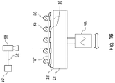 - Figure 3C represents the traversal of the gantry frame 30 above the binder coated wafer 12 therebeneath.