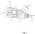 - Auf der dem Strafferrohr 5 abgewandten Seite ist der Führungsblock 1 derart ausgebildet, dass das Zugseil 4 parallel fluchtend (