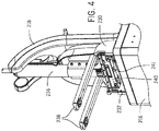 - the foot pedal 224 and the mechanisms used to raise and lower the carriage 234 are activated and a user may, for example, pump the foot pedal 224 to raise the carriage 234, support arm 218 and arm 236 upward in a vertical direction as indicated by arrow 253.