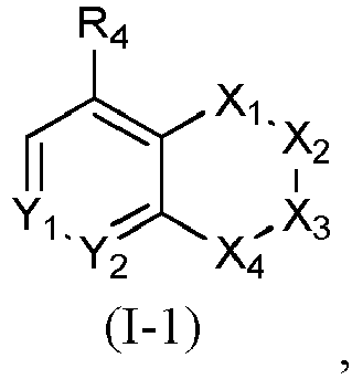 - Y 1 and Y 2 are CH; each R 4 is independently selected from H, deuterium, halogen, C 1-4 alkyl, C 1-4 alkoxy, C 2-6 alkenyl, C 2-6 alkynyl, C 3-6 cycloalkyl, cyano, hydroxyl, NH 2 , -NHC 1-4 alkyl, -N(C 1-4 alkyl) 2 , - COOH, -COC 1-4 alkyl, -COOC 1-4 alkyl, -CONHC 1-4 alkyl, -CON(C 1-4 alkyl) 2 , -NHCOC 1-4 alkyl, and a 4-7-membered heterocycle containing 1-3 heteroatoms selected from N, S and O, wherein the alkyl, alkenyl, alkynyl, cycloalkyl, and heterocycle groups in the case of R 4 are optionally substituted with 1-3 groups selected from deuterium, halogen, cyano,