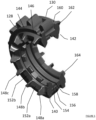 - the second annular carrier 142 like the first annular carrier 128, is provided with a castellated ring 164 around the outboard face of the second annular carrier 130. Again, a series of alternating reliefs are formed between the fingers which have alternating depth so that a like number of deep slots and shallow slots are provided by the ring 164.