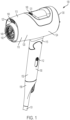 - a user selectively turns hair dryer 100 on and off by moving power button 112 toward and away from housing 110 between an on position of power button 112 that is shown in FIG. 1 and an off position of power button 112 that is closer to cord sleeve 159.