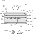 Figur 4 zeigt eine Beleuchtungsanlage 300, die einen erfindungsgemäßen Schichtaufbau 200 aufweist, wie er in Figur 3 beschrieben wurde. Die Beleuchtungsanlage 300 weist neben dem erfindungsgemäßen Schichtaufbau 200 mindestens eine Lichtquelle 310 und/oder einen Sensor 320 auf sowie mindestens eine LED-Kantenbeleuchtung 330, die Licht in die Schicht 202 einkoppelt.