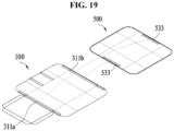 - the joint portions are folded inward, a part of the easy adhesive portion 311 may be exposed in the extended middle part, and the compartment 170 may be fixed to the exposed part of the easy adhesive portion 311, and can be contained securely without falling out in the portable mode.