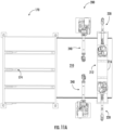 - the pre-drilling station comprises, adjacent to at least two tracks of a frame transport on which the wall frame is movable through the pre-drilling station, a stopper system comprising at least first and second vertically actuatable posts, wherein the first post is configured to stop a movement of the wall frame such that the one or more through-holes may be formed through a wall stud in contact with the first post, wherein the second post is spaced apart from the first post, in a direction of movement of the wall frame along the frame transport, by a width of the wall stud, and wherein the second post is vertically actuated, when a double wall stud configuration is detected, to stop a movement of the wall frame such that the one or more through-holes may be formed through a trailing wall stud of the double wall stud.