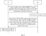 - the method includes: An AP sends a trigger frame, where the trigger frame is used to trigger a station to send an EHT TB PPDU; and the AP receives the EHT TB PPDU sent by the station.