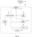 - the emitter 26 to emit audible sound signals, infrared signals, visible light signals, while an antenna 46 (shown in FIG. 4 ) may emit and/or receive wireless signals which broadly speaking may be AM signals, FM signals, microwave signals, combinations thereof, or any other suitable type of wireless signal, using any known communication protocol, e.g. wifi, Bluetooth, cellular, conventional radio, etc.