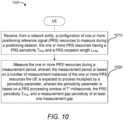 - a non-transitory computer-readable medium stores computer-executable instructions that, when executed by a user equipment (LTE), cause the LTE to: receive, from a network entity, a configuration of one or more positioning reference signal (PRS) resources to measure during a positioning session, the one or more PRS resources having a PRS periodicity TPRS and a PRS occasion length LPRS; and measure the one or more PRS resources during a measurement period, wherein the measurement period is based on a number of measurement instances of the one or more PRS resources the UE is expected to process multiplied by a periodicity parameter, wherein the periodicity parameter is based on a PRS processing window of 'T' milliseconds, the PRS periodicity TPRS, and a measurement gap periodicity of at least one measurement gap.