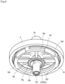 - valve element 6 Since movement of the valve element 6 may be inhibited by pressure due to residual air in a boss 5a of a cap 3 to be described later, the valve element 6 need not necessarily be configured to become fully open insofar as a desired flowage area can be secured. While a fully open state of the valve element 6 is shown in Fig. 3 , an opening degree of the valve element 6 is to vary in accordance with a flow rate depending on a mass of the reciprocative body 2 and a restoring force of a spring body 21.