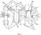 - the shafts of the driving attachments (7; 8) and/or of the driven attachments (9; 10) are mutually facing each other in correspondence of the central plane (2a) of the frame (2), but in the embodiments depicted in figures from 1 to 6 the shafts of the driving attachments (7; 8) and/or of the driven attachments (9; 10) can be (at least partially) set into a mutual compenetration structural architecture: to this aims, the shafts may further comprise cross-plane protruding extremities (12a; 12b; 12c; 12d) which mutually compenetrate across the central plane (2a) of the frame (2).