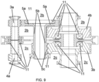 - the overall/resulting number and location of the bearings (11) can be suitably chosen in order to fulfill various technical requirements: for example, in a possible embodiment of the present invention at least one, and preferably all the cross-plane intermediate element/s (5, 6), is directly supported by at least one housing directly located in the frame (2): such housing is therefore not comprising bearings (11) located in the central plane (2a), and eventually suitably placed and dimensioned bearings (11) related to such cross-plane intermediate element/s (5; 6) can be resting in/on portions of the frame (2) not defining or belonging to the central plane (2a).