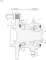 - a hub ring which is an inner member, has a hub flange extending radially outward, a sliding face on which a main lip of a sealing device is in sliding contact is formed at a base end portion of the hub flange, and a recess portion is formed on an outer diameter side relative to the sliding face of the hub flange.