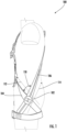 - Safety harness 100 can include an upper torso portion comprising first shoulder strap 104 and a second shoulder strap 106, respectively, for extending over the shoulders of a user and a multi-component chest strap (not shown) for extending over and/or wrapping around the chest of the user.