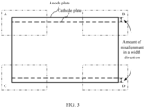 - an overhang region (a part of the anode plate beyond the cathode plate in length and width directions) is usually designed, that is, an edge of the anode plate and an edge of the cathode plate are not aligned, but there is an amount of misalignment. If the amount of misalignment of the anode plate relative to the cathode plate is excessively small, the foregoing lithium precipitation problem is likely to occur. Therefore, it is necessary to detect the amount of misalignment during production inspection of lithium batteries.