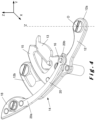 - La forme de la courbe force-déplacement peut être modifiée en modifiant les paramètres tels que la courbure de la lame 20 (apex H), les rayons R, R', l'angle α, l'épaisseur de la lame, etc., de manière à avoir un seuil de force important sans trop augmenter la force finale, tout en respectant des valeurs de contrainte modérées acceptables.