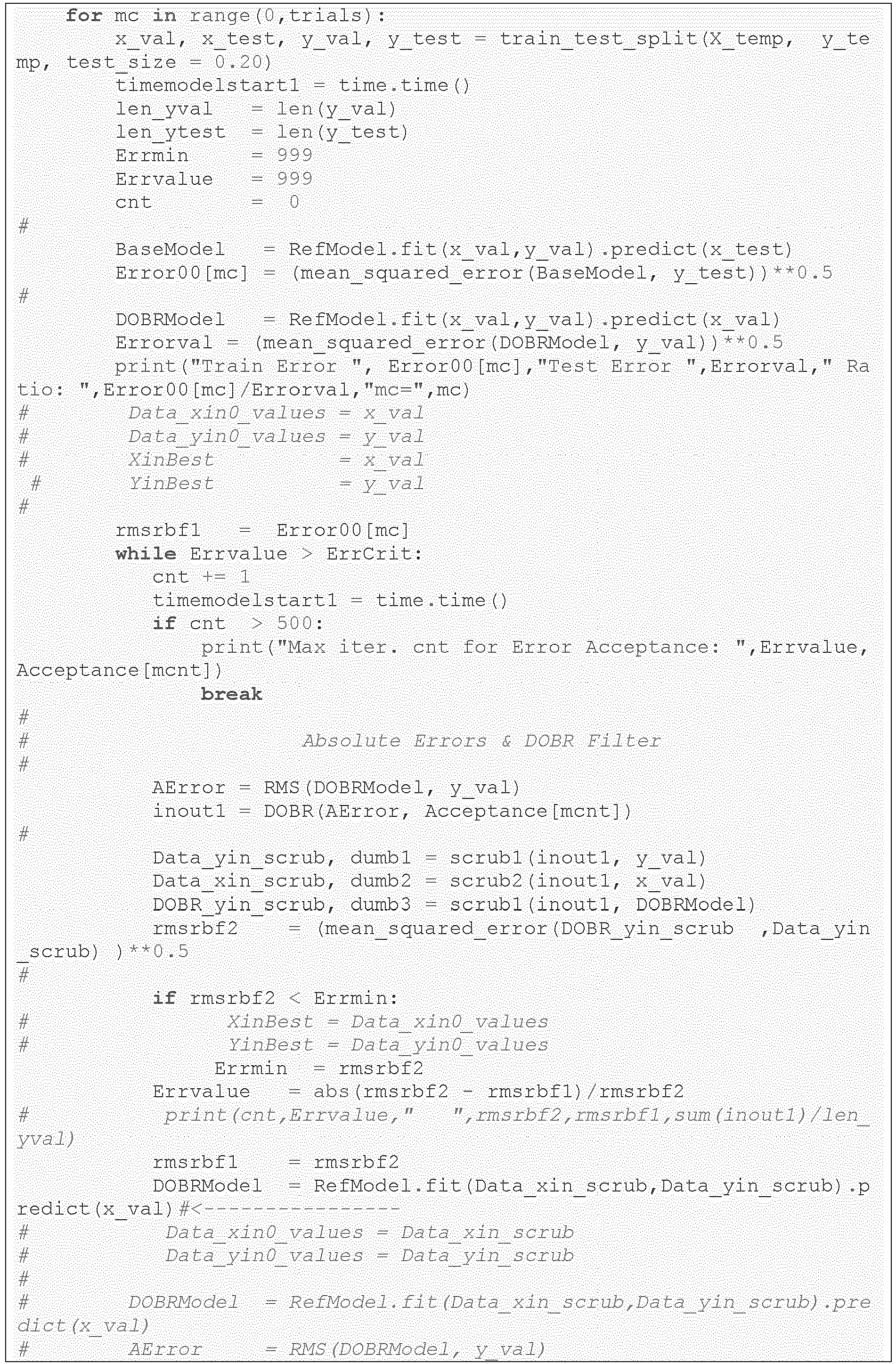 - the methods include receiving, by at least one processor, a training data set of target variables representing at least one activity-related attribute for at least one user activity; receiving, by the at least one processor, at least one bias criteria used to determine one or more outliers; determining, by the at least one processor, a set of model parameters for a machine learning model including: (1) applying, by the at least one processor, the machine learning model having a set of initial model parameters to the training data set to determine a set of model predicted values; (2) generating, by the at least one processor, an error set of data element errors by comparing the set of model predicted values to corresponding actual values of the training data set; (3) generating, by the at least one processor, a data selection vector to identify non-outlier target variables based at least in part on the error set of data element errors and the at least one bias criteria; (4) utilizing, by the at least one processor, the data selection vector on the training data set to generate a non-outlier