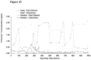 - a breakthrough curve enables the calculation of a technically usable sorption capacity. Breakthrough curves typically plot target species concentration vs. volume treated. See, e.g., Fig. 14 .