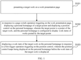 - the position control for positioning the work the user has just viewed on the work presentation page is displayed on the personal homepage, and the position control keeps being displayed on the personal homepage before displaying the work item of the target work.