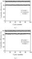 - Fig. 1 shows a chart of Coulomb efficiency for 100 cycles of the batteries of Example 1 and Comparative Example 1.
