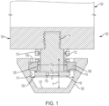 - the main body 112 can have a recess 119 adapted for receiving a tool such as a wrench or the like for turning the fastener into and out of the sole of the shoe. While the present exemplary embodiment of the fastener is threaded, other types of fasteners applicable for the intended purpose are permitted, e.g., J-lock or friction-fit fasteners, and the like.