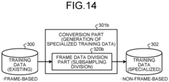 - the first embodiment is an example of combining Item (A) and Item (1). More specifically, the first embodiment is the example of converting the frame-based image data (training data) according to the existing recognizer into image data (training data), corresponding to the specialized recognizer, obtained by subsampling or line division.