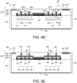 - FIGs 4A, 4B, 4C, 4D, and 4E (referred to collectively herein as FIG. 4) show top and side, cross-sectional views of a layout of a FET segment with primary and ancillary transistor elements, in accordance with another embodiment;