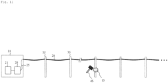 - the overhead cable 26 is a cable stretched in the air by a pillar or the like.
