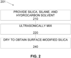 - a process for producing a surface-modified silica includes ultrasonically mixing silica and a silane in a hydrocarbon solvent to form a solution; and drying the solution to obtain the surface-modified silica.