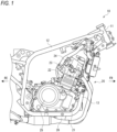 - the vehicle body frame 10 includes a main tube 12 that extends rearward from an upper portion of a head pipe 11 and then is bent downward, and a down tube 13 that extends downward from a lower portion of the head pipe 11 and then is bent rearward.