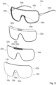 - eine alternative erfindungsgemäße Sonnenbrillenvorrichtung mit einem Brillenrahmen, mit einem Monoscheibenelement und mit einem optischen Sonnenschutzfilter in einer schematischen Darstellung,