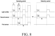 - the second sensor may be configured to receive light reflected by the user's finger.