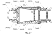 - the left-right rear wheel cover includes a left rear wheel cover 7000L and a right rear wheel cover 7000R that are integrally molded through hot stamping of an integral sheet material, where the left rear wheel cover 7000L and the right rear wheel cover 7000R are respectively disposed on two sides of the rear floor framework 6000.