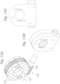 - the device of the second aspect may further include a plurality of guide elements which are each constrained by fixed grooves in the outer housing for movement between first and second positions along lines that are tangential to a circle around the central axis, the guide elements moving at least some of the crimping jaws along the lines such that all of the crimping wedges of the crimping jaws translate inward along radial lines toward the crimping axis.